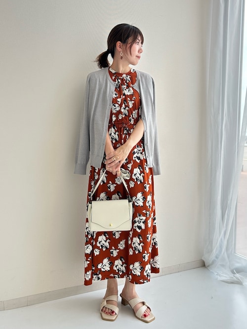 肌寒いときはカーディガンを肩掛けするとより上品な雰囲気になります。