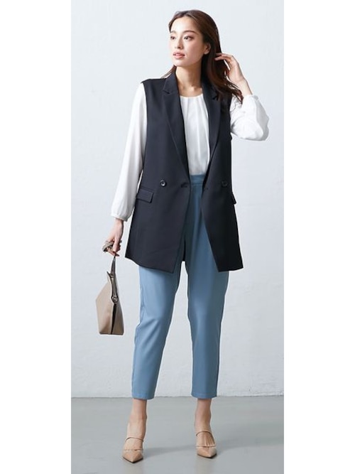 軽やかなブラウスとパンツの組み合わせには、ジレを1枚プラスするだけで、春の装いがぐっと今っぽく洗練された印象になります。