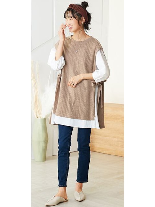 ゆったりとしたシルエットでいながらも、しっかりおしゃれ見えが叶う重ね着風チュニック。