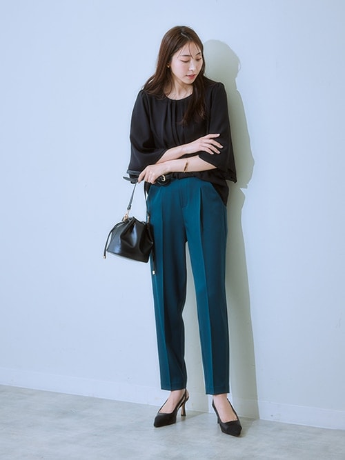足元はパンプスやローファーですっきりまとめると、コーデにさらに統一感が加わります。