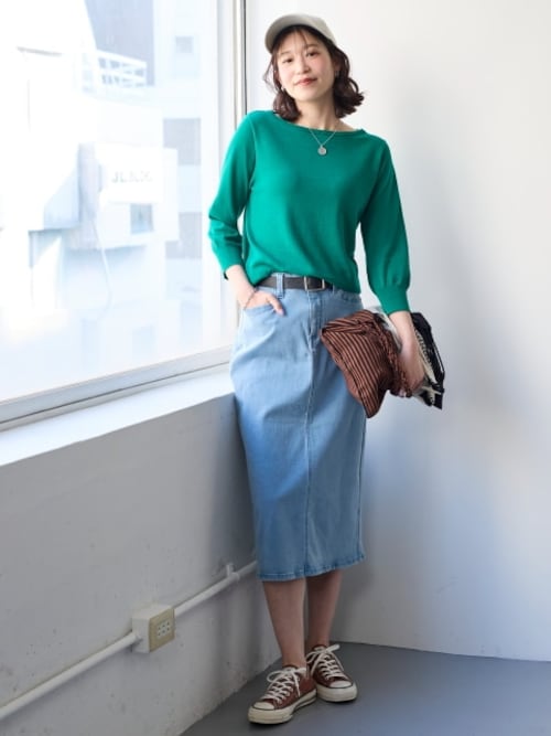 デニム素材のスカートはクラシカルで秋らしい雰囲気♪ひざ丈のものだと、動きやすく秋のレジャーにもぴったりです。