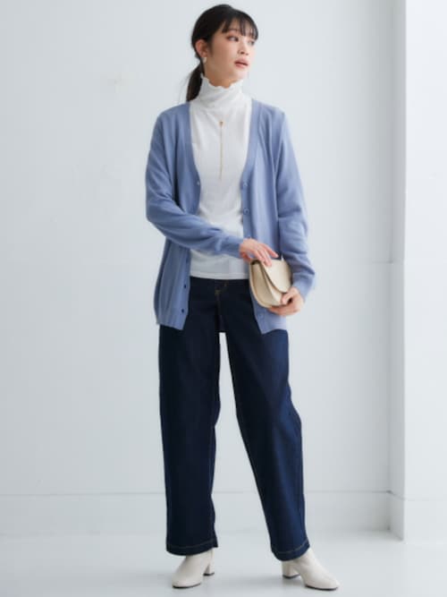 今回セレクトしたカーディガンは、無駄が無いシンプルなクルーネックデザインなので、様々なシーンで着回しが可能です。