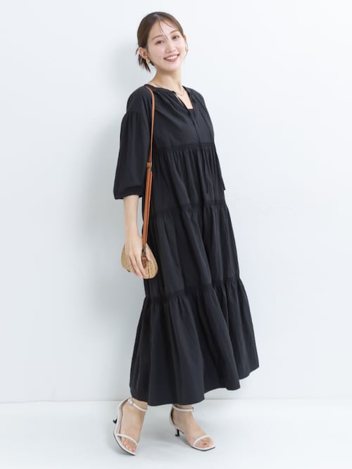 小さいサイズ キーネックティアードワンピース 低身長さん・小柄女性