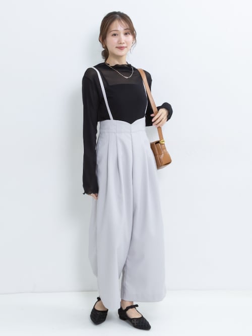 小さいサイズ サスペンダー付きワイドパンツ 低身長さん・小柄女性