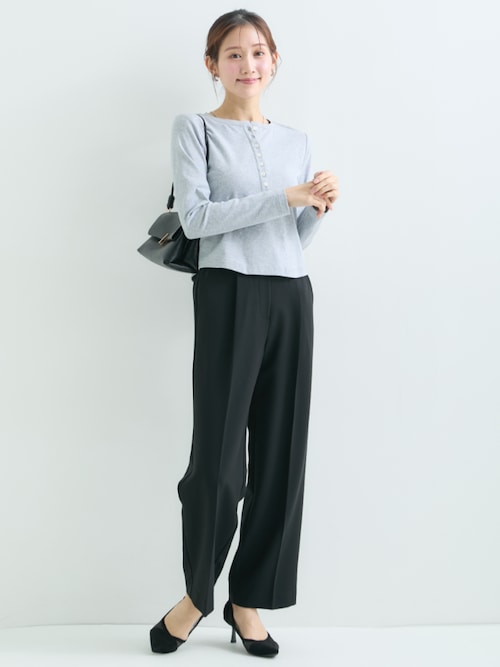 小さいサイズ ヘンリーネックロングスリーブT 低身長さん・小柄女性
